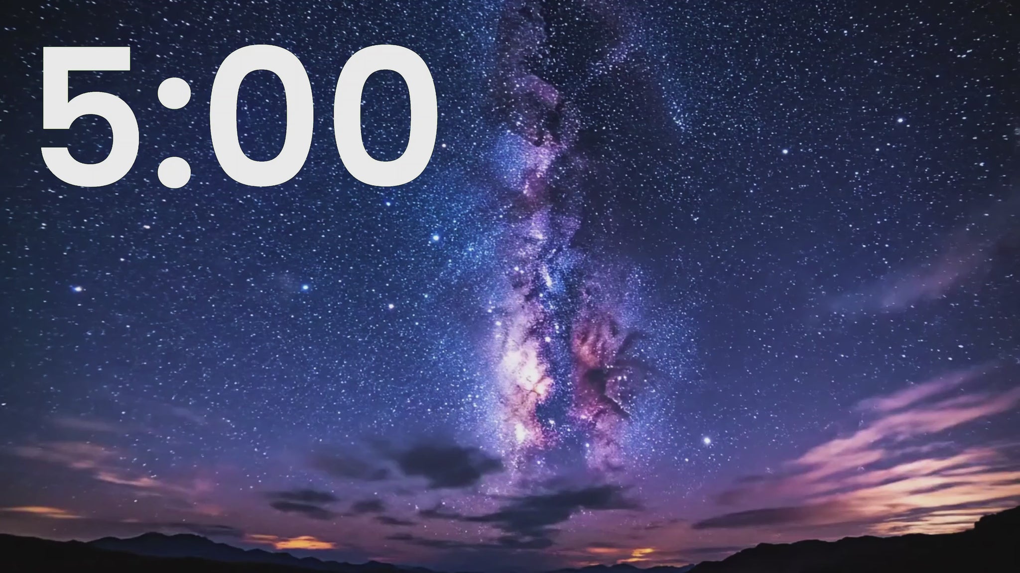 A serene visual timer featuring a peaceful starry sky designed to create a calming atmosphere. The gentle countdown and tranquil imagery support quiet time, reflection, and mindfulness practices in classrooms, study spaces, or personal wellness routines.